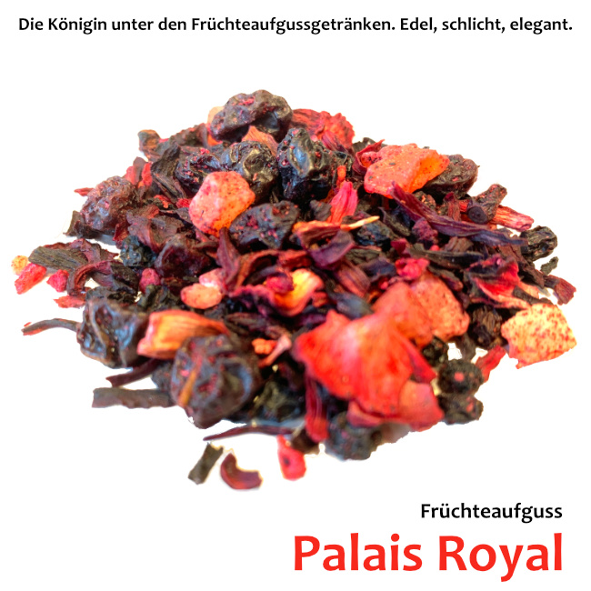 Die Königin unter den Früchteaufgussgetränken. Edel, schlicht, elegant. An warmen Sommertagen bietet es sich an, einen kräftigeren Aufguss herzustellen und diesen erkaltet mit etwas Sekt oder Mineralwasser und mit einem Minzblatt dekoriert als Eistee zu genießen. Für diesen intensiven und exotischen Hochgenuss haben wir auf Apfelstücke verzichtet. Kräftige Ergiebigkeit bieten leckere Papayawürfel, fruchtig-saure Hibiskusblüten und vollmundige Beeren.